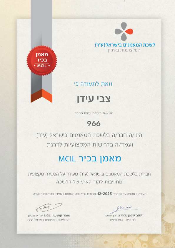 מאמן בכיר ומדריך מוסמך על ידי לשכת המאמנים הישראלית